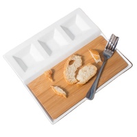 取り外し可能な竹製チーズボード付き白分割セラミックサービングプレート