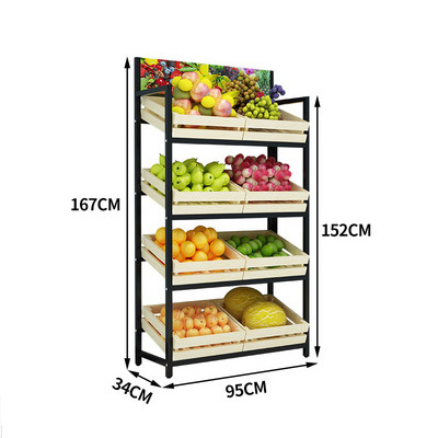 신선한 과일 야채 철 프레임 슈퍼마켓 선반 스탠드 디스플레이 나무 과일 디스플레이 랙