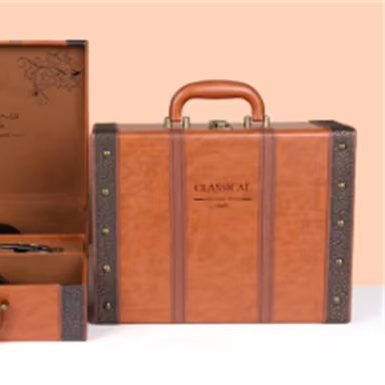 Đôi duy nhất Cổ Phiếu rượu vang đỏ Hộp Quà Tặng cầm tay bằng gỗ PU da hình chữ nhật bao bì cho đồ uống rỗng bao bì hộp