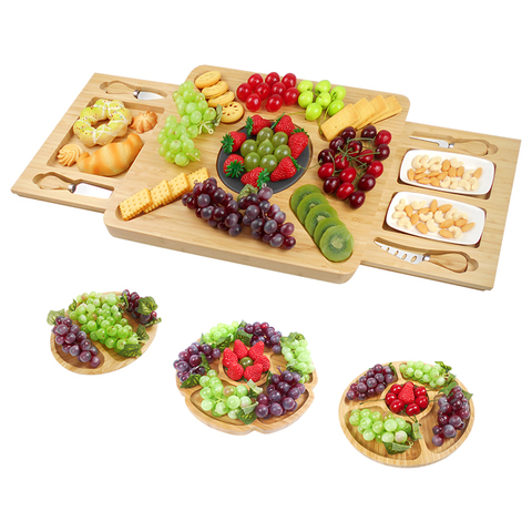 ชุดมีดเขียงไม้ไผ่ Charcuterie,มี2แผ่นเซรามิกเสิร์ฟจานแม่เหล็ก2ลิ้นชัก CNLF