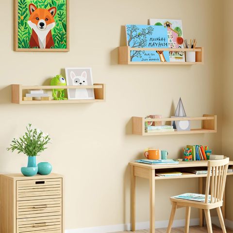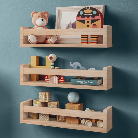 Yüzer kreş kitap rafları duvar 3 Set için, doğal ahşap duvara monte raflardan çocuk odası için, bebek kreş yatak odası dekoru